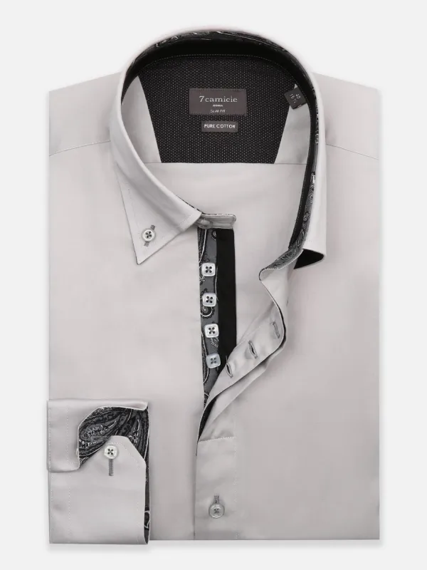 7Camicie Zakelijk overhemd ‘Roma Iconic Satin Man Shirt Grey’ grijs