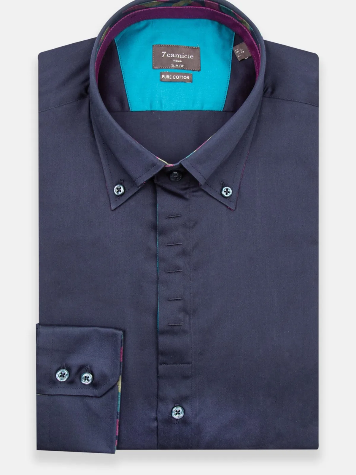 7Camicie Zakelijk overhemd ‘Roma Satin Man Shirt Green’ blauw