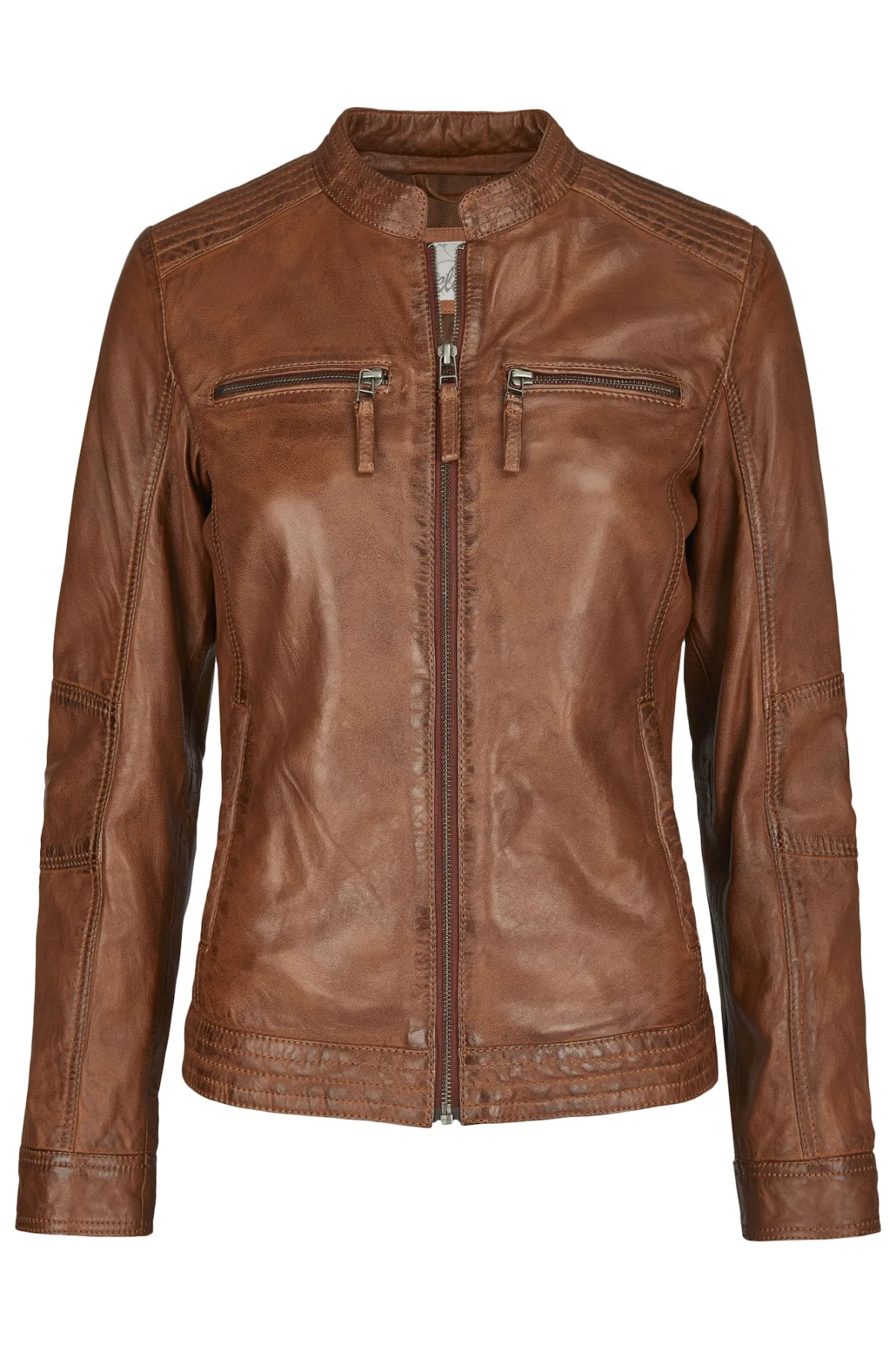 Type sluiting: Ritssluiting; Type jas: Bikerjack; Voering: Licht gevoerd; Materiaal: Leer; Motief: Effen; Pasvorm: Normale pasvorm