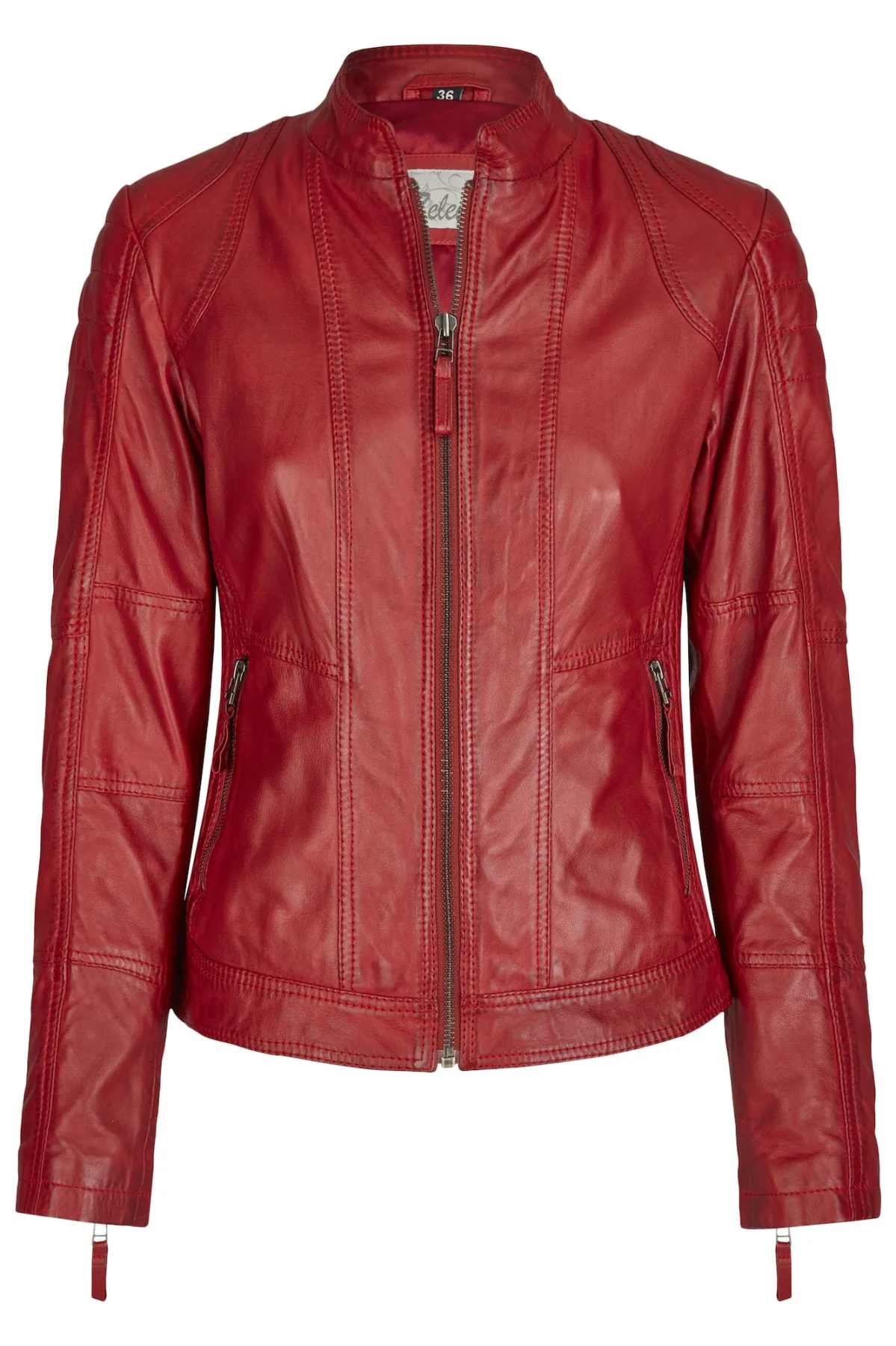Design: Ritssluiting, Mouw rits, Staande kraag, Getailleerd model, Ritszakken aan de zijkant, Siernaad; Type sluiting: Ritssluiting; Type jas: Bikerjack; Voering: Licht gevoerd; Materiaal: Leer; Motief: Effen; Extra's: Stiksels, Op staal naden, Nappaleer, Lamsleer; Pasvorm: Aansluitende pasvorm