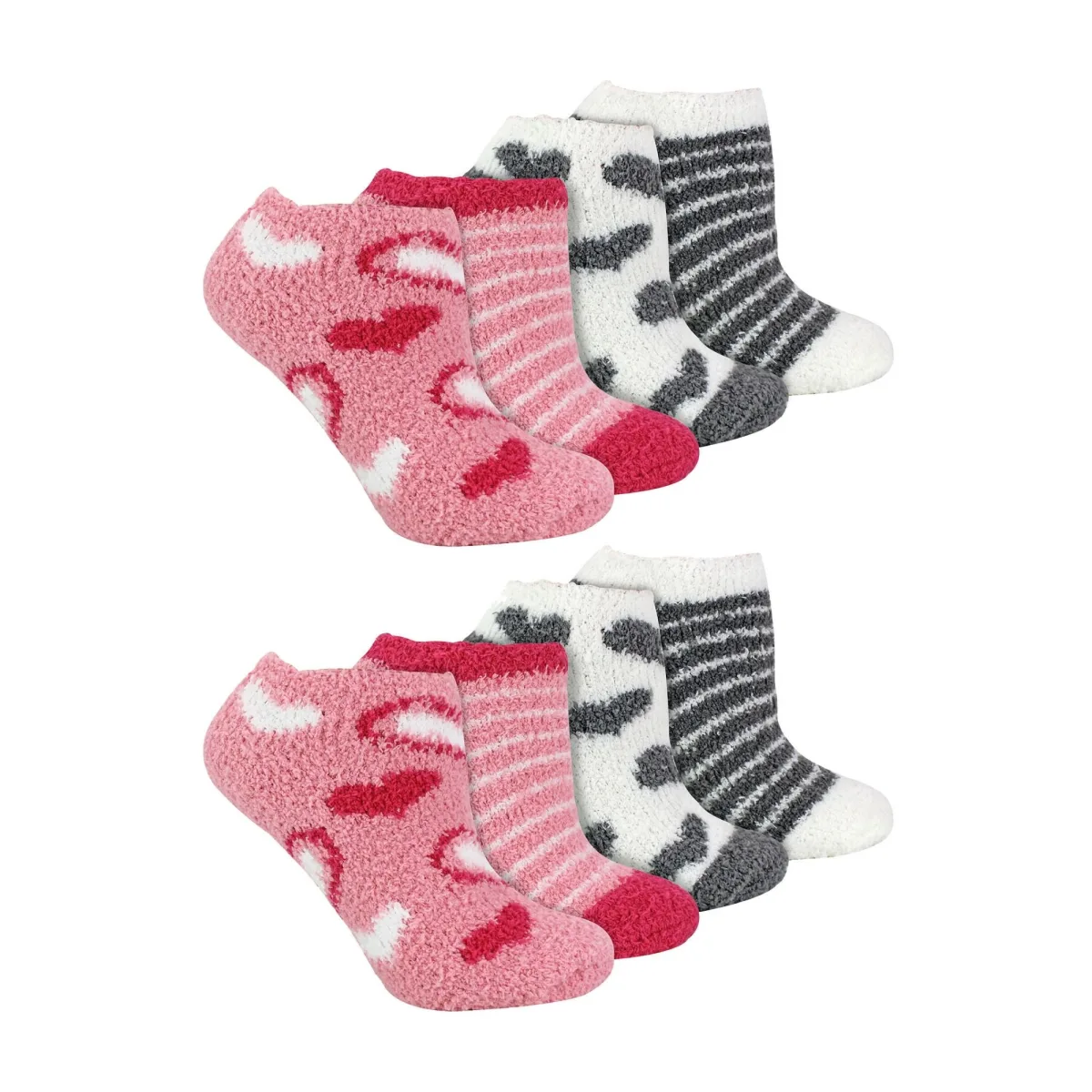 Dames 8-pack Trainer Dierprint Gezellige Sokken: Maak kennis met deze extreem zachte en fluffy sokken met unieke luipaardpatronen, perfect om je voeten warm te houden. Deze heerlijke damesokken zijn super gezellig. Perfect om je voeten warm te houden terwijl je rondhangt in huis, en gedurende deze winter. Dus als je deze sokken als bedsokken gebruikt, zijn ze speciaal ontworpen om je lichaamswarmte vast te houden, waardoor je voeten langer warmer blijven in extreme kou. Deze dames trainer sokken zijn de perfecte aanvulling op jouw wintergarderobe. Ze zijn gemaakt van super zacht, fluffy materiaal en hebben een extra zachte boord, ontworpen voor jouw optimaal comfort en passen zich zorgvuldig aan de natuurlijke contouren van je been aan. Ze hebben een dierprintdesign zodat je een beetje persoonlijkheid aan je voeten kunt toevoegen en komen in Grijs & Beige in elk pakket, zodat je niet vast zit aan één kleur die niet goed past bij wat je draagt. Deze sokken worden geleverd in 8 paar, 2 kleuren en zijn gemaakt van: 98% Polyester en 2% Elastaan. Ze zijn beschikbaar in Dames één maat: 4-8 UK en zijn machinewasbaar. Extra productdetails: Dames Gezellige Trainer Sokken Zacht, Fluffy & Gezellig 8 Paar Multipack Dierprint Design Ideaal Voor De Winter 2 Kleuren Per Pakket Een Geweldig Cadeau-idee Gewaardeerd Voor Je Geld Dames Eén maat: 4-8 UK Machinewasbaar