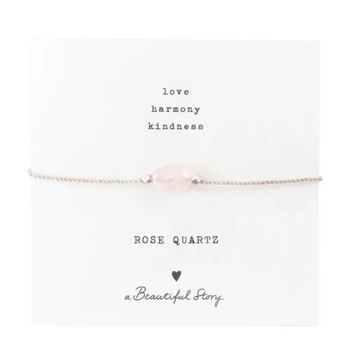 A Beautiful Story armband Gemstone Card Rozenkwarts zilverkleurig