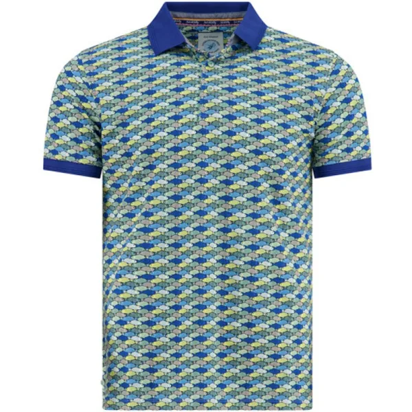 Polo met een kleurrijke allover grafische print met vissen. Modern fit 95% Katoen/ 5% Elasthan