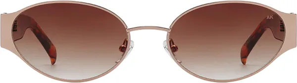 Zonnebril Bella van A Kjaerbede aps heeft een slank, ovaal montuur met metalen brug, verstelbare neuspads en stevige pootjes. Het minimalistische design draagt licht en zit stabiel. Combineer met een blazer, vest of T-shirt voor een casual, sophisticated uitstraling.
