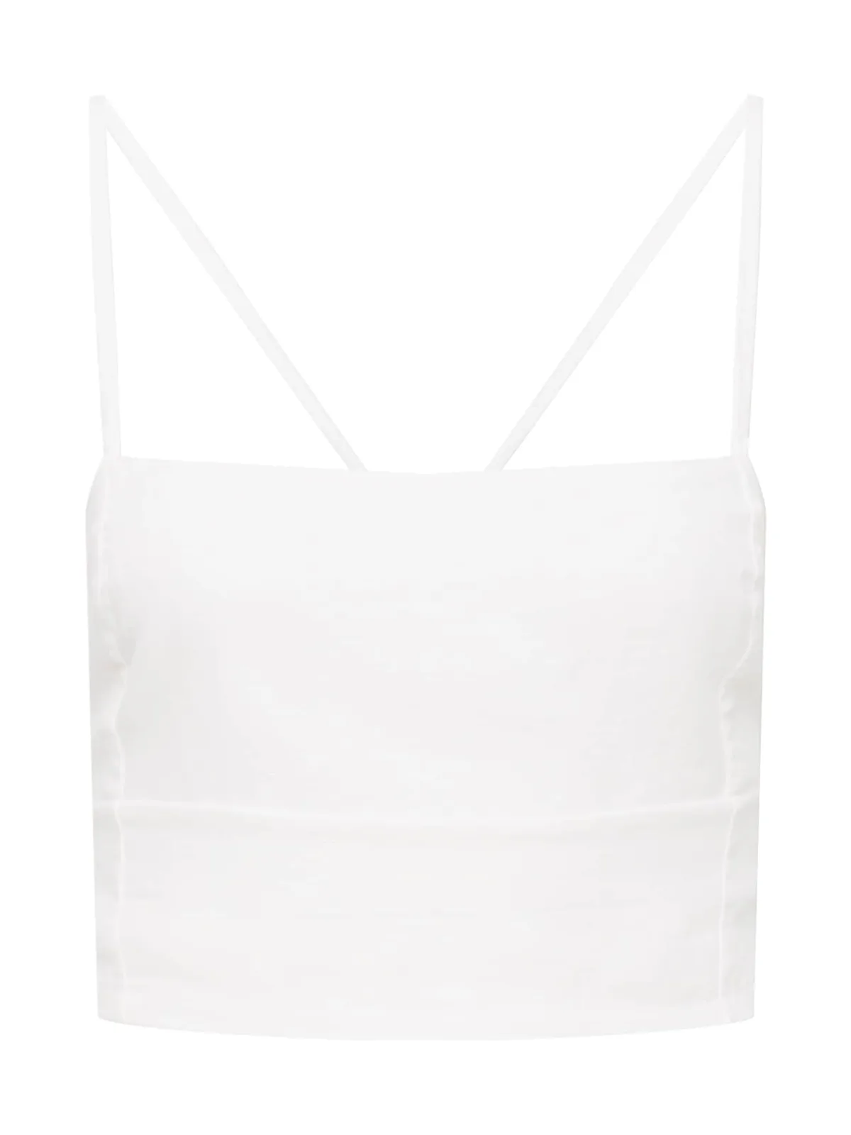 Blouse type: Blouseshirt; Design: Gevoerde zoom/rand, Vetering, Deelnaden, Diepe snit/decolleté; Materiaal: Linnen; Halstype: Open rug; Motief: Effen; Kraag: Zonder kraag; Soort bandjes: Spaghettibandjes; Details: Cut-outs; Extra's: Op staal naden, Lichte stof; Pasvorm: Aansluitende pasvorm; Armlengte: Mouwloos; Lengte: Korte pasvorm