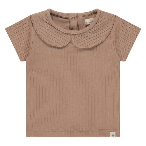 Dit T-shirt van A Tiny Story heeft een schattige Peter Pan-kraag en korte mouwen. Ideaal voor meisjes die houden van comfortabele en speelse kleding. De mix van katoen en modal zorgt voor een fijne pasvorm.
