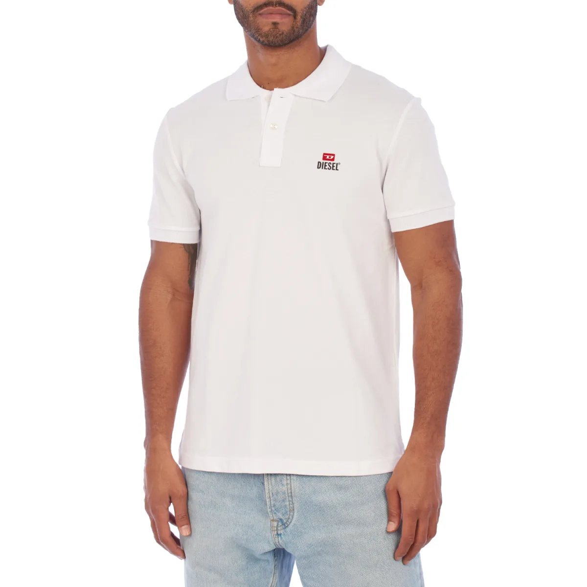 Poloshirt van het merk Diesel gemaakt van zacht katoen van hoge kwaliteit, dat de hele dag comfort en ademend vermogen biedt. Deze polo heeft een klassieke kraag met twee knopen en combineert een slimme en casual stijl, perfect voor elke gelegenheid. Het Diesel-logo is discreet op de borst geborduurd en voegt een opvallende merknaam toe. De mouwen zijn geribd voor een comfortabele en flatteuze pasvorm. Dit kledingstuk is ideaal om te combineren met jeans of een casual broek en is een veelzijdige en essentiële aanvulling op de garderobe van een man. Samenstelling: 100% katoen Onderhoud: - Machinewas max. 30ºC. - Vermijd het gebruik van bleekmiddelen. - Gebruik geen droger. - Strijken op lage temperatuur.