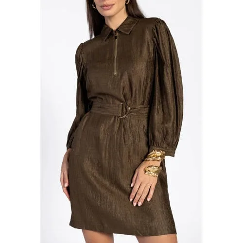 Deze SEMIRA jurk van Aaiko heeft lange mouwen en een korte lengte. De jurk is gemaakt van viscose en heeft een ritssluiting, een klassieke kraag, een ceintuur en riemlussen. De mouwen zijn pofmouwen.