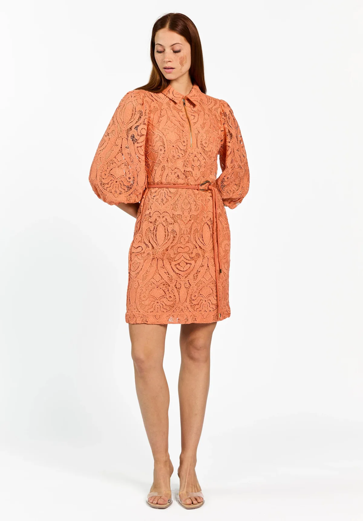 Val op in elke feestelijke setting met deze Aaiko Semira jurk in warme oranje tint. De korte jurk heeft een A-lijn pasvorm die soepel rond je lichaam valt en een duidelijk gedefinieerde vorm geeft. De polokraag met striksluiting zorgt voor een verzorgde halslijn, terwijl de half lange mouwen je look netjes maar luchtig houden, ideaal voor het voorjaar.Verfijnde details voor een feestelijke look Korte jurk met A-lijn pasvorm, geeft ruimte rond heupen en benen Polokraag met striksluiting voor een nette, gesloten halslijn Half lange, rechte mouwen voor een licht en verzorgd effect Ceintuur in de taille voor extra vorm en duidelijke nadruk op je middel Kantdetails en sierrits zorgen voor een verfijnd karakter Combinatie van bloemenprint en effen oranje voor een frisse voorjaarslook Zachte, soepele stof die aangenaam aanvoelt op de huid Geen zakken, waardoor de lijn van de jurk rustig en strak blijftGeschikt voor bruiloft en avondfeestDe Semira jurk leent zich goed voor feestelijke gelegenheden. Of je nu bruiloftsgast bent of een speciale avond op de planning hebt, de lengte en de speelse details passen daar goed bij. Met subtiele hakken en minimalistische sieraden ontstaat in een paar stappen een complete, feestelijke outfit.De stijlvisie van AaikoAaiko staat voor moderne designs met oog voor detail. De collecties sluiten aan op de laatste trends en blijven tegelijk goed draagbaar in het dagelijkse leven. Met deze jurk uit de Boutique collectie kies je voor een doordacht ontwerp waarin vormgeving en draagcomfort samenkomen.Een passende keuze voor wie op een feest of bruiloft graag verzorgd en opvallend gekleed gaat.