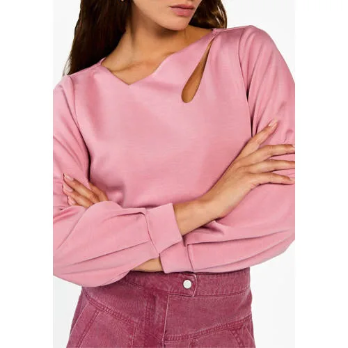 Geef je look een frisse update met de Aaiko ds sweater in zachte roze tint. Deze korte trui heeft een moderne uitstraling door de combinatie van een vierkante hals, rechte mouwen en een speels open detail. Ideaal voor lentedagen waarop je iets opvallends zoekt dat toch makkelijk te dragen is.Eigentijdse sweater met bijzondere details Korte lengte die mooi valt op een hoge taille broek of rok Vierkante hals voor een moderne, open halslijn Asymmetrisch design en open detail voor een stijlvolle twist Rechte lange mouwen voor een rustige, strakke lijn Elastische boord onderaan voor een comfortabele pasvorm Effen roze kleur die eenvoudig te combineren isZo draag je deze roze sweaterDeze sweater past goed bij een high waist jeans of een wijde pantalon voor een ontspannen outfit. In combinatie met een midi-rok en sneakers ontstaat een vrouwelijke, maar toch casual look. De effen kleur maakt het eenvoudig om te spelen met accessoires, zoals een opvallende ketting of oorbellen langs de vierkante halslijn.Aaiko boutique stijlAaiko staat bekend om eigentijdse designs met verfijnde details. De boutique items zijn ontworpen met aandacht voor vorm en afwerking, zodat je kledingkast gevuld is met stukken die net even anders zijn, maar wel goed te combineren blijven.Een moderne sweater die je makkelijk aantrekt als je iets bijzonders wilt zonder in te leveren op dagelijkse draagbaarheid.