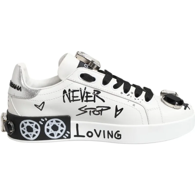 Stap naar buiten, val op en claim de straten. Deze witte leren sneakers, versierd met een uniek graffiti-ontwerp, geven een stoere vibe aan je dagelijkse stijl. De duurzame rubberen zool zorgt voor een lange levensduur, terwijl de vetersluiting voor een veilige pasvorm zorgt. Geniet van de technologie voor comfort de hele dag die je ondersteunt, waar je stedelijke avonturen je ook brengen. Deze sneakers zijn niet zomaar schoenen; ze zijn een statement. De onderhoudsvriendelijke constructie betekent dat ze altijd klaar zijn om blikken te trekken. Perfect voor een rebelse touch aan elke casual outfit.