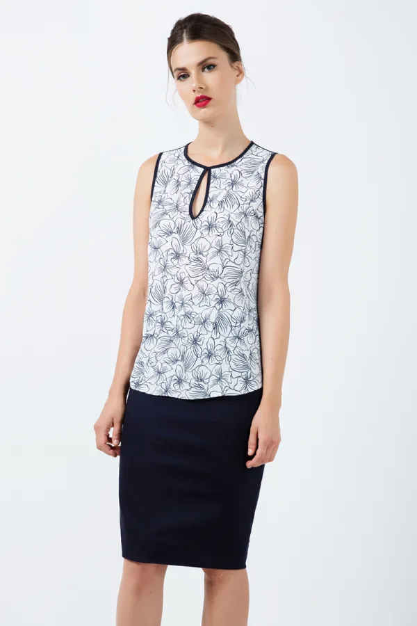 Aansluitende kokerrok met contrasterende witte streep