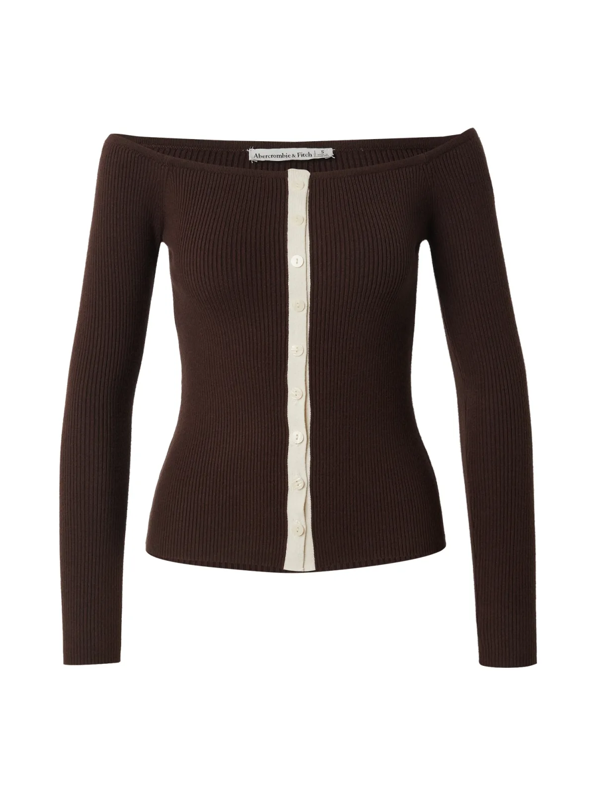 Design: Rechte zoom, Geribbeld gebreid, Strapless/off-shoulder, Contrasterende inserts; Type sluiting: Knoopsluiting; Materiaal: Knitwear; Halstype: Carmen hals; Motief: Effen; Extra's: Fully fashioned, Met textuur; Pasvorm: Slanke pasvorm; Armlengte: Lange mouw; Lengte: Normale lengte