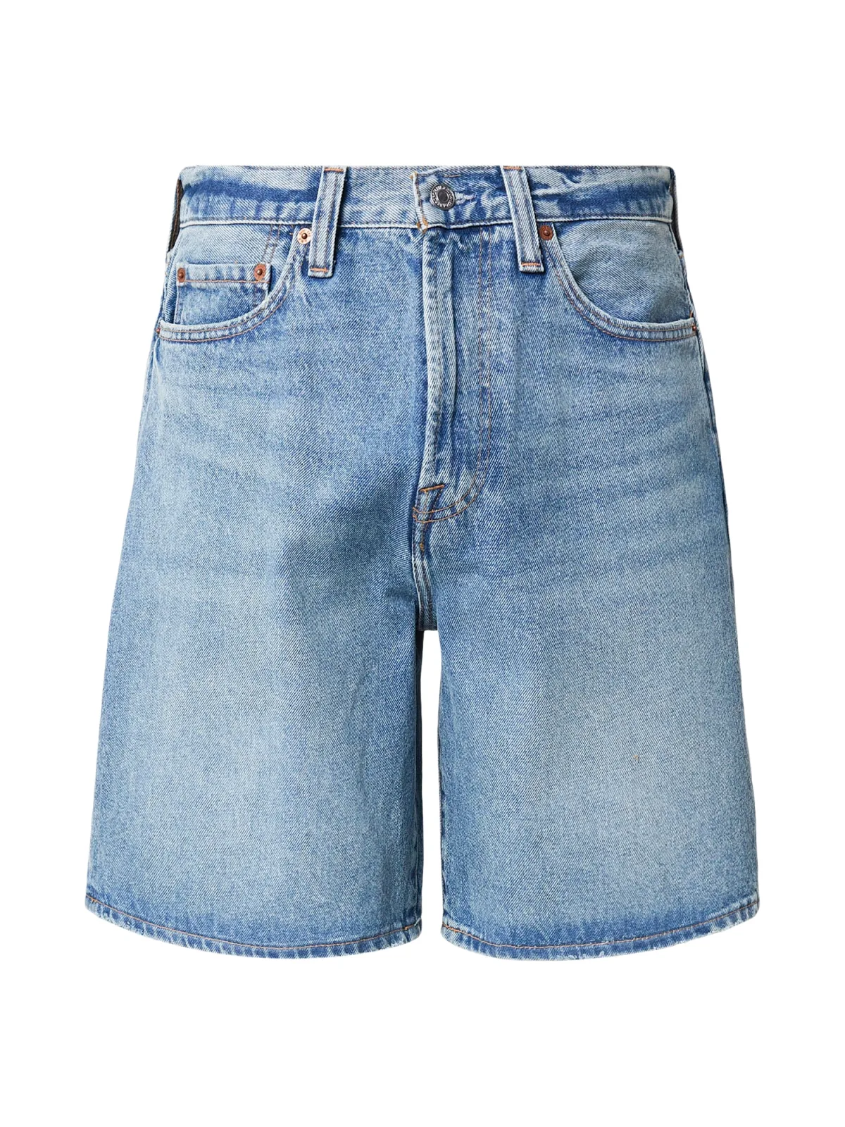 Design: Gevoerde zoom/rand, 5-pocket-style; Type sluiting: Ritssluiting; Materiaal: Denim; Motief: Effen; Extra's: Studs, Riemlussen; Wassing: Light washed; Lengte: Knielengte; Pasvorm: Baggy