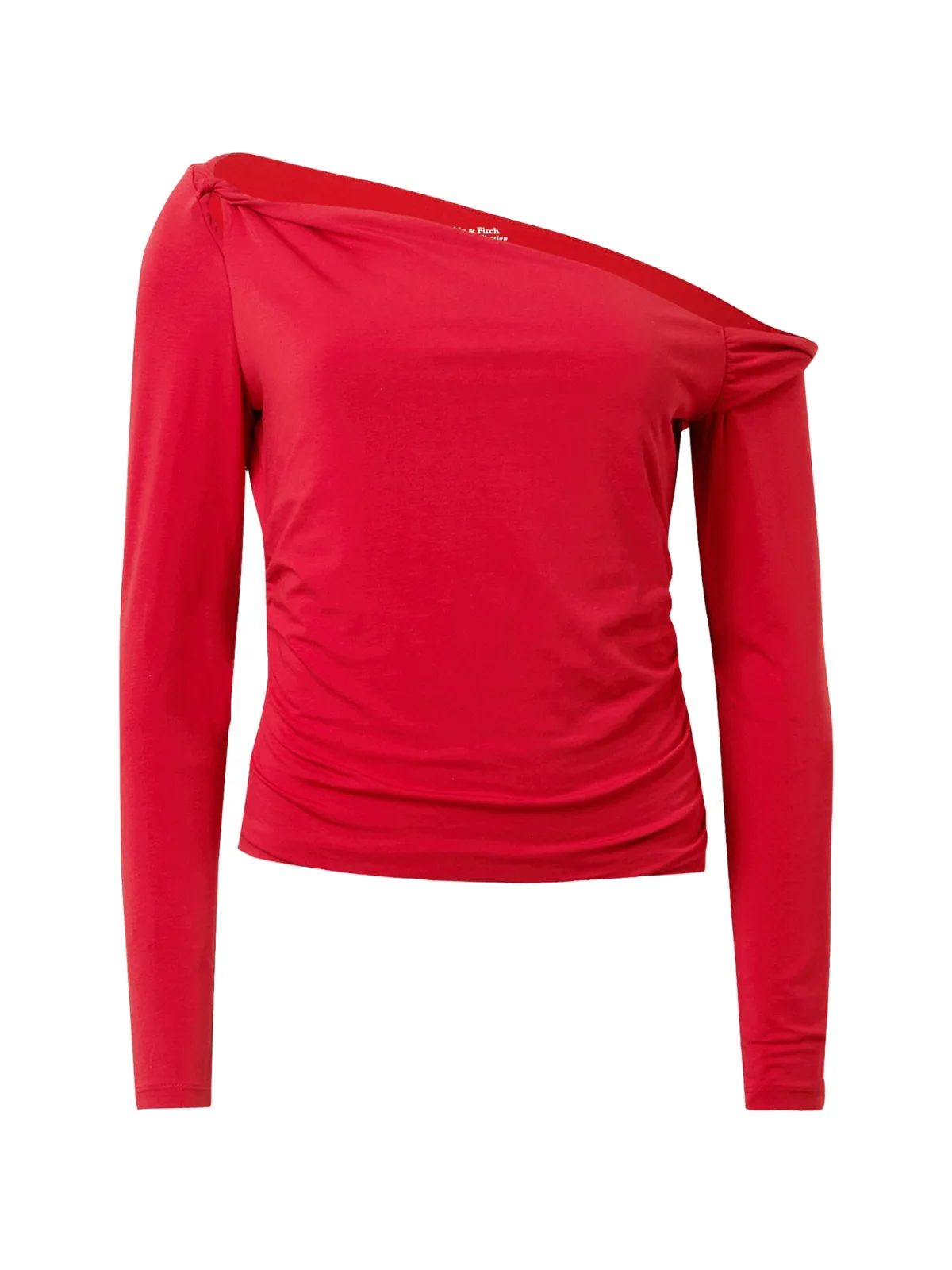 Design: Gevoerde zoom/rand, Rechte zoom; Materiaal: Jersey; Motief: Effen; Details: Cut-outs, Gedrapeerd; Extra's: Op staal naden, Voelt zacht aan; Pasvorm: Aansluitende pasvorm; Armlengte: Lange mouw; Lengte: Normale lengte