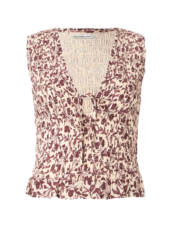 Design: Gevoerde zoom/rand, Diepe snit/decolleté, Om te knopen/binden; Materiaal: Viscose; Halstype: V-hals; Motief: Bloemenprint; Soort bandjes: Brede bandjes; Details: Gedrapeerd; Extra's: All-over patroon, Met textuur; Pasvorm: Slanke pasvorm; Armlengte: Mouwloos; Lengte: Korte pasvorm