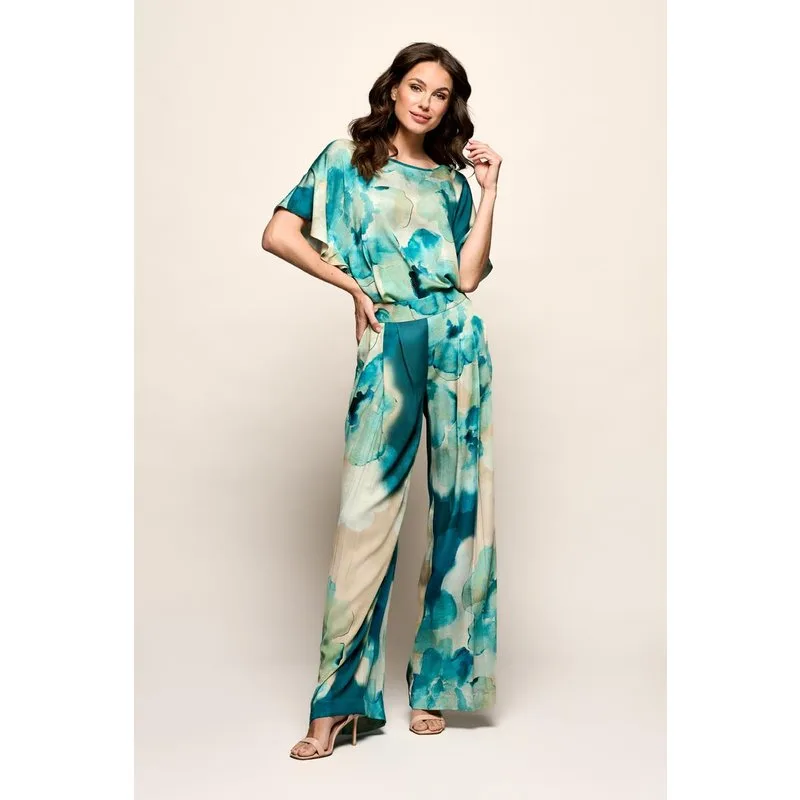 Blauwe Abigail top met aquarel bloemenprint – elegant en verfijndDe Abigail print top in blauw van Mart Visser is een stijlvolle en vrouwelijke dames top met een kleurrijke aquarelprint. Het multicolour dessin combineert verschillende blauwtinten met zachte nude- en subtiele groentinten, wat zorgt voor een frisse en verfijnde uitstraling. Het schilderachtige patroon doet denken aan handgeschilderde bloemen en geeft de top een elegante en artistieke look. De bloemvormen in de print maken deze multicolor top tot een echte eyecatcher, perfect voor zowel dagelijkse outfits als meer feestelijke gelegenheden. Doordat het dessin willekeurig over de stof is verdeeld, is iedere top uniek. De top heeft een rechte, soepel vallende pasvorm die comfortabel langs het lichaam valt. De korte mouwen en ronde halslijn zorgen voor een tijdloze en elegante uitstraling. Met een lengte tot op de heup is deze top eenvoudig te combineren met verschillende broeken, rokken of shorts. Gemaakt van 100% viscose voelt de top licht en ademend aan, wat zorgt voor optimaal draagcomfort tijdens warme dagen. Onderhoudstips: viscose kan na het wassen iets krimpen, maar met stoom kan de stof eenvoudig weer in model worden gebracht