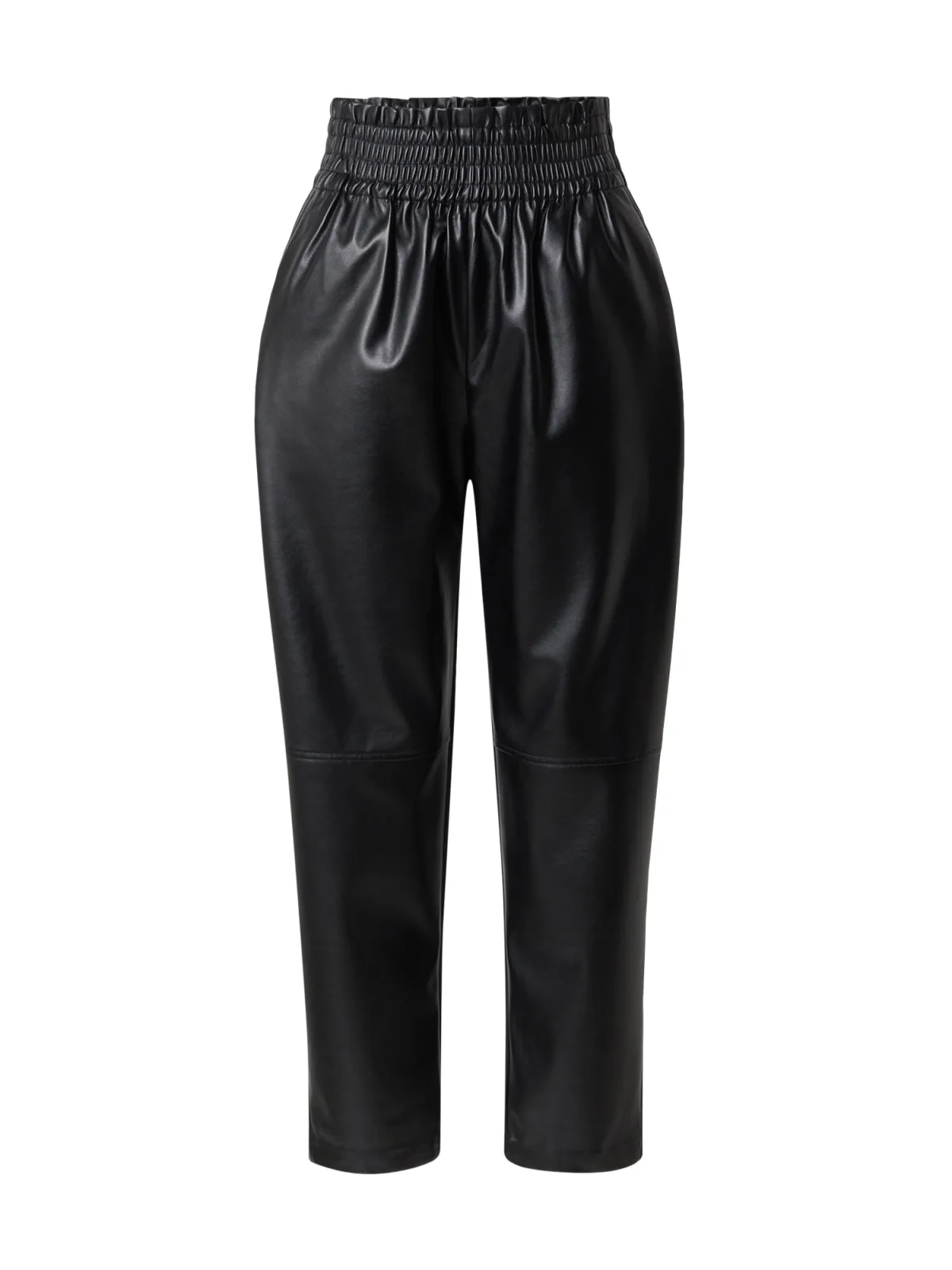 Design: Gevoerde zoom/rand, Elastische taille/zoom, Zakken aan de zijkant; Materiaal: Imitatieleder; Motief: Effen; Details: Gedrapeerd; Extra's: Glanzend, Op staal naden, Gladde stof; Lengte: 7/8 lengte; Pasvorm: Regular; Taillehoogte: High waist