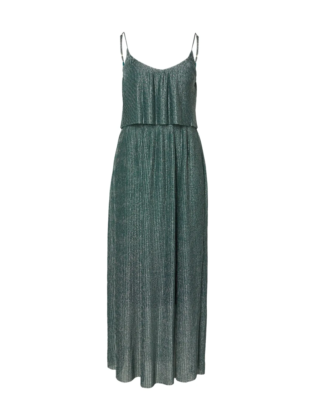 Design: Rechte zoom, Diepe snit/decolleté; Materiaal: Gerecycled materiaal; Halstype: V-hals; Motief: Effen; Soort bandjes: Spaghettibandjes; Details: Gedrapeerd; Extra's: Glitterend, Verstelbare bandjes, Met textuur, Milieuvriendelijk geproduceerd; Lengte: 7/8 lengte; Snit: Getailleerd; Pasvorm: Normale pasvorm; Armlengte: Mouwloos