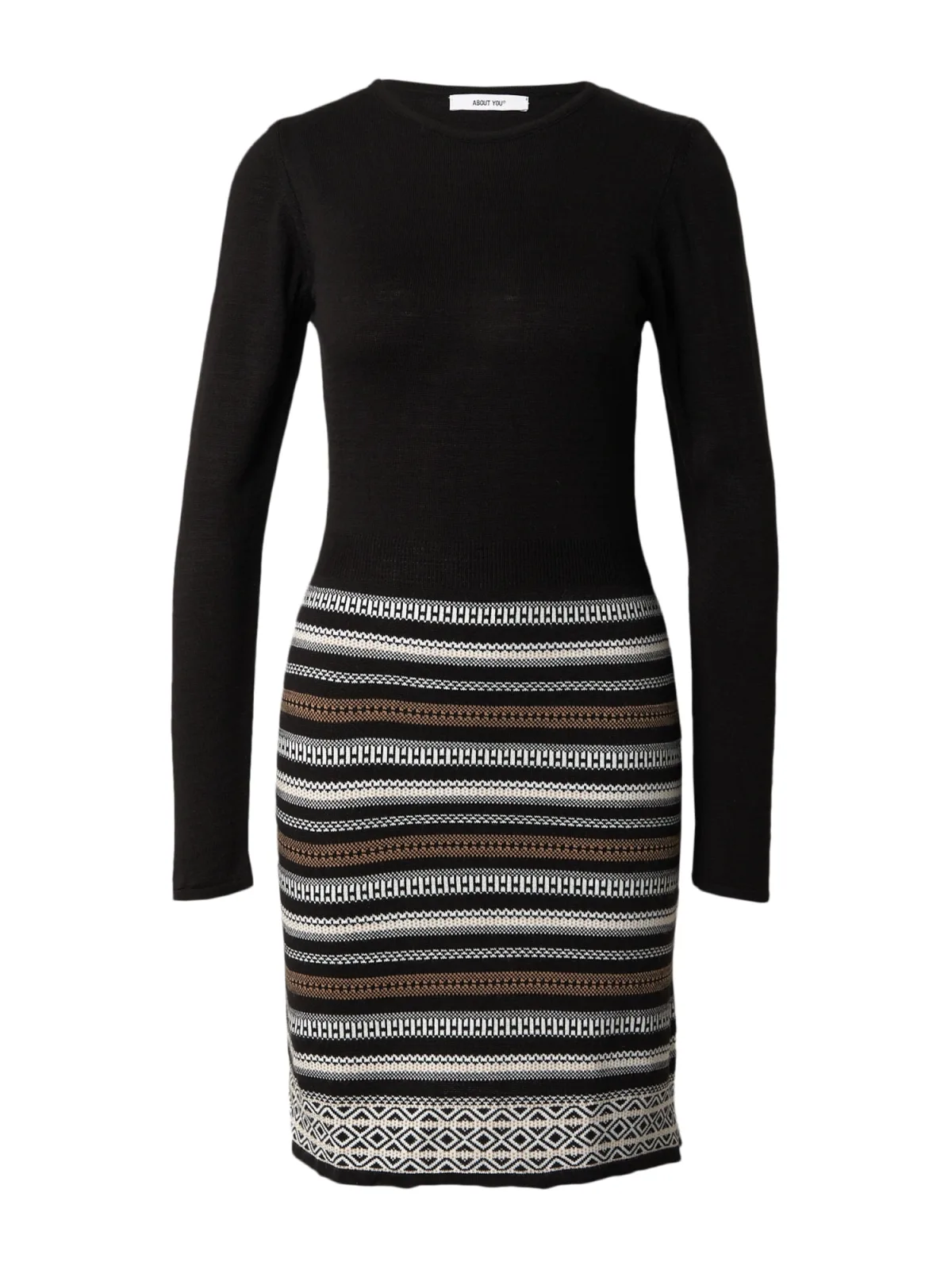 ABOUT YOU Gebreide jurk 'Penelope' bruin / zwart / wit