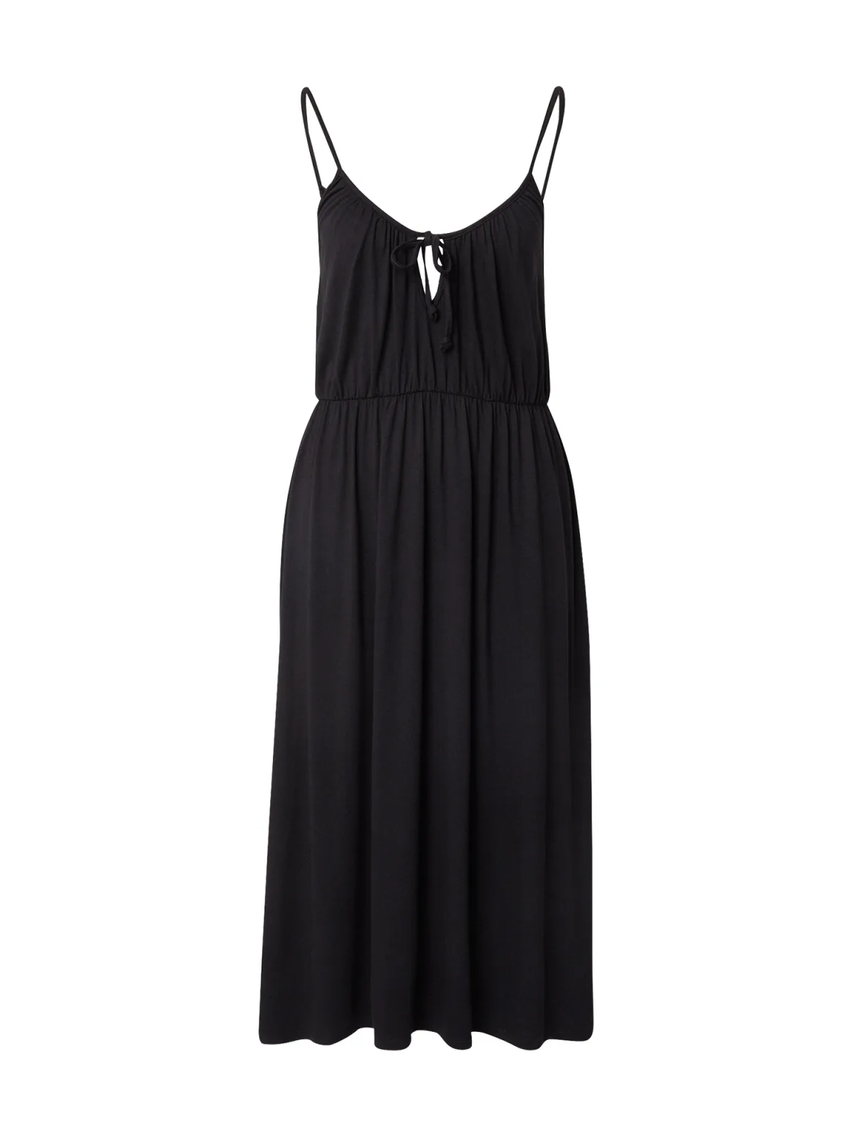 Design: Elastische taille/zoom, Met band/snoer, Ingelegde kraag; Materiaal: Jersey; Halstype: Uitgesneden hals; Motief: Effen; Soort bandjes: Spaghettibandjes; Details: Gedrapeerd; Extra's: Verstelbare bandjes, Gladde stof; Lengte: 3/4 lengte; Snit: Getailleerd; Pasvorm: Normale pasvorm; Armlengte: Mouwloos