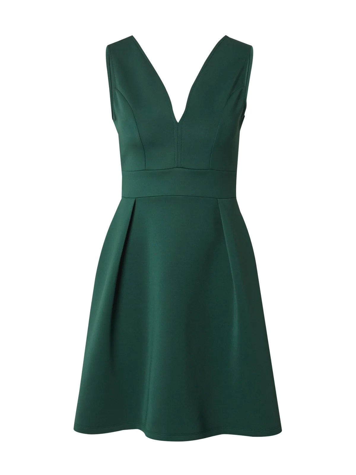 Design: Gevoerde zoom/rand, Tailleband, Diepe snit/decolleté, Weense naad, Uitgesneden rug; Type sluiting: Ritssluiting; Halstype: V-hals; Motief: Effen; Soort bandjes: Brede bandjes; Details: Plooien; Extra's: Op staal naden, Gladde stof; Lengte: Knielengte; Snit: Getailleerd; Pasvorm: Normale pasvorm; Armlengte: Mouwloos