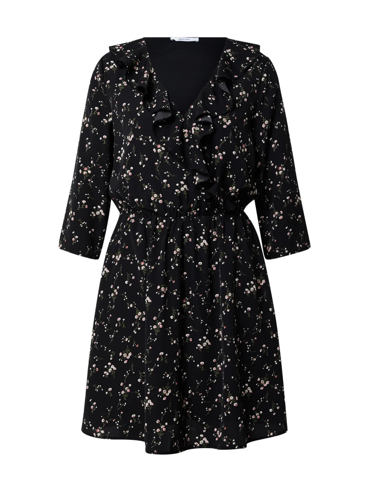 Design: Gevoerde zoom/rand, Diepe snit/decolleté; Halstype: V-hals; Motief: Bloemenprint; Details: Ruches, Gedrapeerd; Extra's: All-over patroon, Op staal naden, Gladde stof; Lengte: Kort/mini; Pasvorm: Normale pasvorm; Armlengte: Driekwart mouw