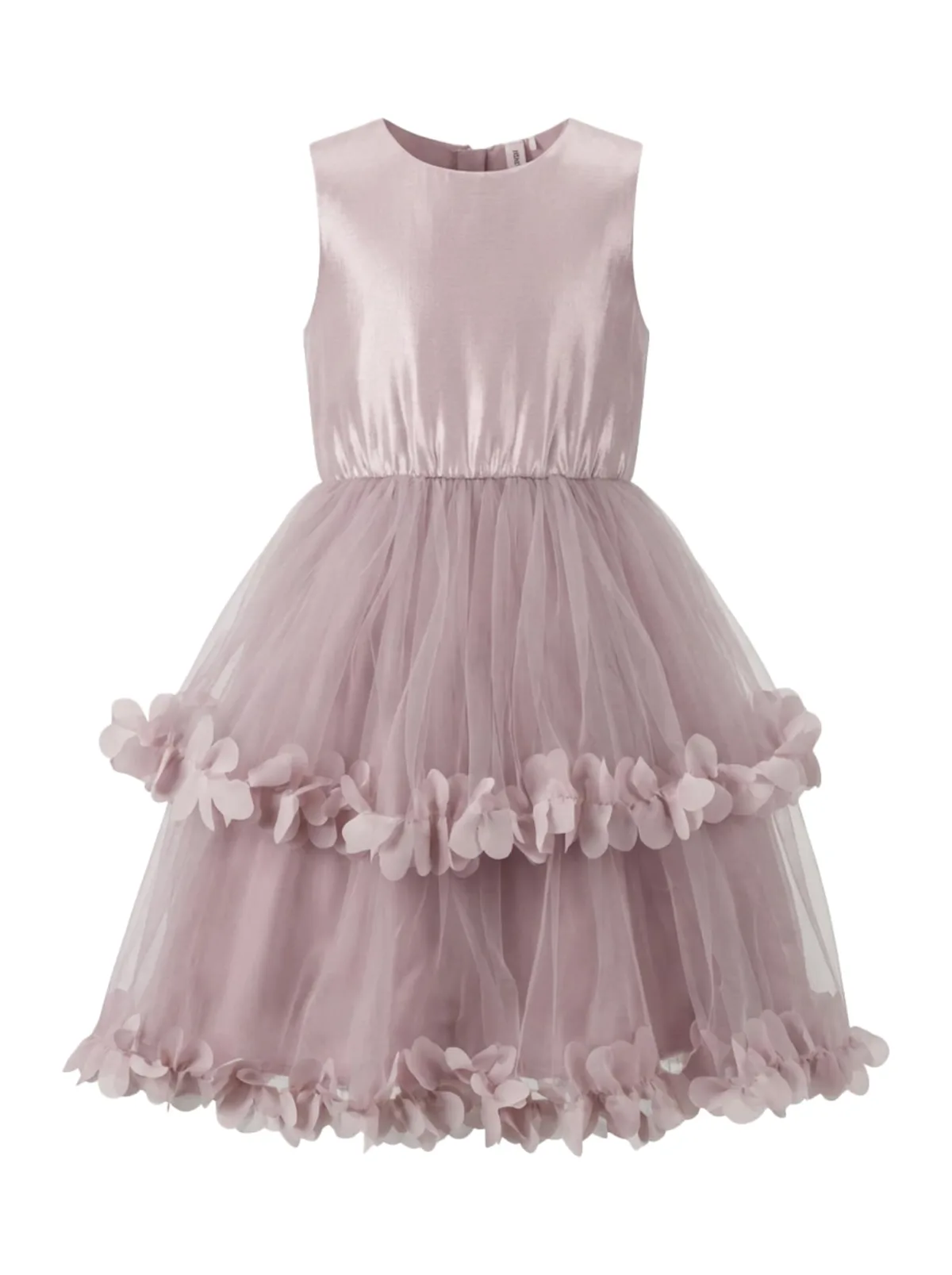 Design: Recht model, Rug rits; Type sluiting: Ritssluiting; Materiaal: Tule; Halstype: Ronde hals; Motief: Effen; Soort bandjes: Brede bandjes; Details: Volant, Gedrapeerd; Extra's: Applicaties, Op staal naden; Lengte: Kort/mini; Pasvorm: Normale pasvorm; Armlengte: Mouwloos