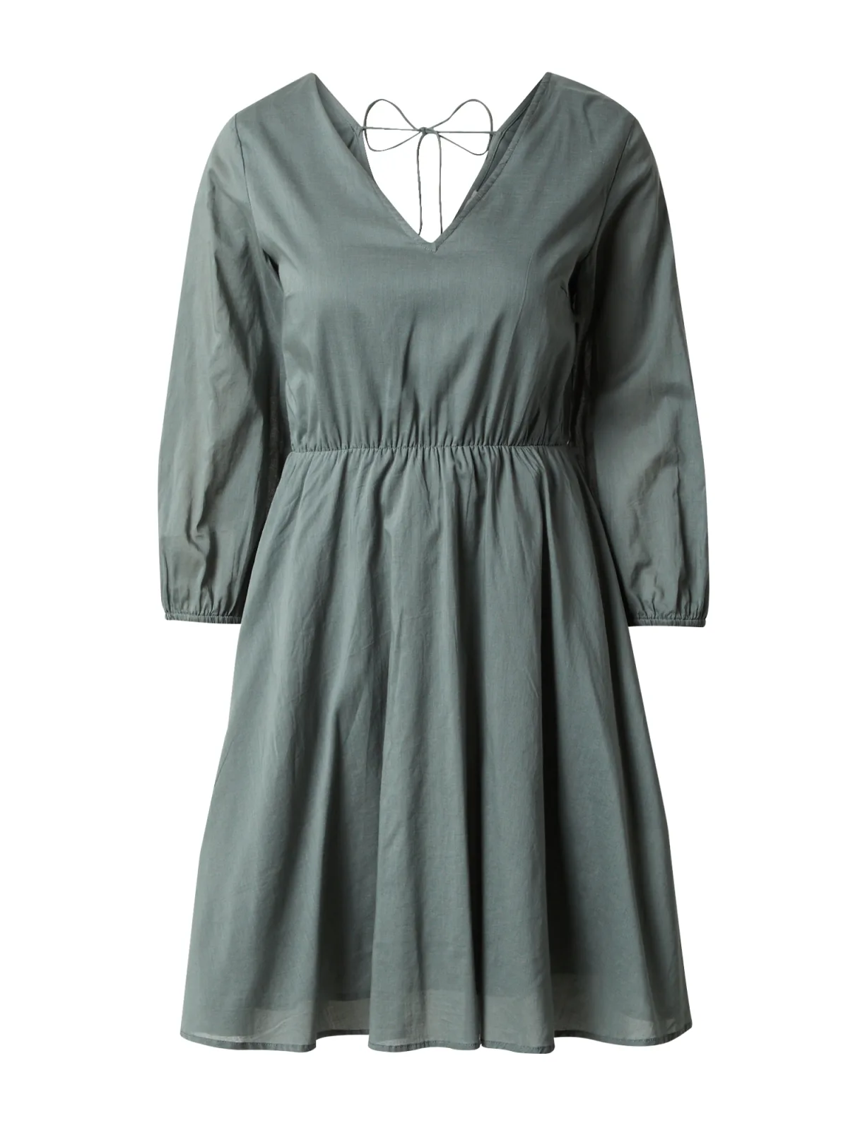 Design: Gevoerde zoom/rand, Flare, Om te knopen/binden, Uitgesneden rug; Materiaal: Katoen; Halstype: V-hals; Motief: Effen; Details: Gedrapeerd; Extra's: Op staal naden, Voelt zacht aan; Lengte: Kort/mini; Pasvorm: Normale pasvorm; Armlengte: Lange mouw
