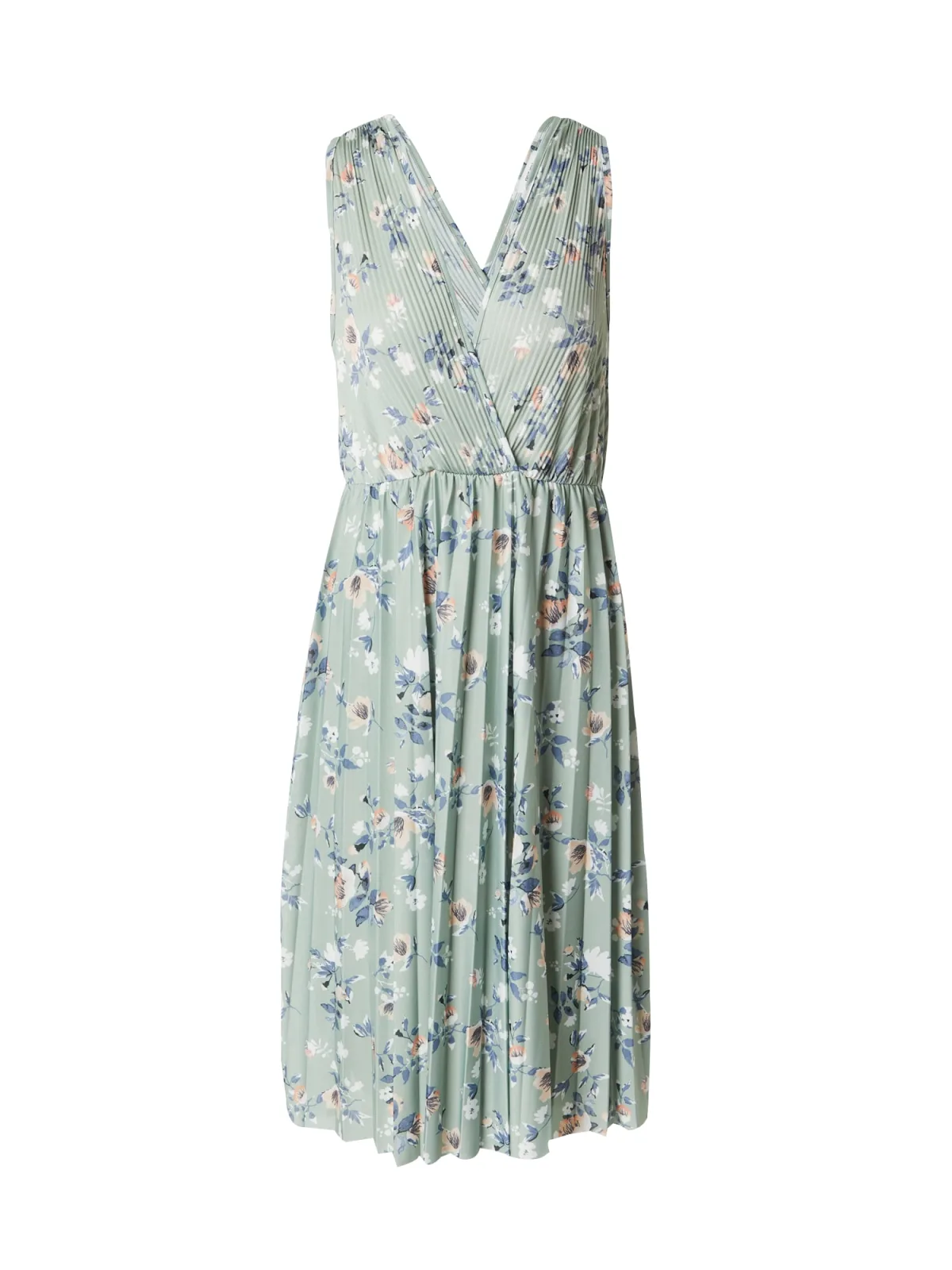 Design: Gevoerde zoom/rand, Wikkel-look; Materiaal: Gerecycled materiaal; Halstype: V-hals; Motief: Bloemenprint; Soort bandjes: Brede bandjes; Details: Plooien, Gedrapeerd, Plissé, Wikkel design; Extra's: All-over patroon, Gladde stof; Lengte: Knielengte; Pasvorm: Normale pasvorm; Armlengte: Mouwloos