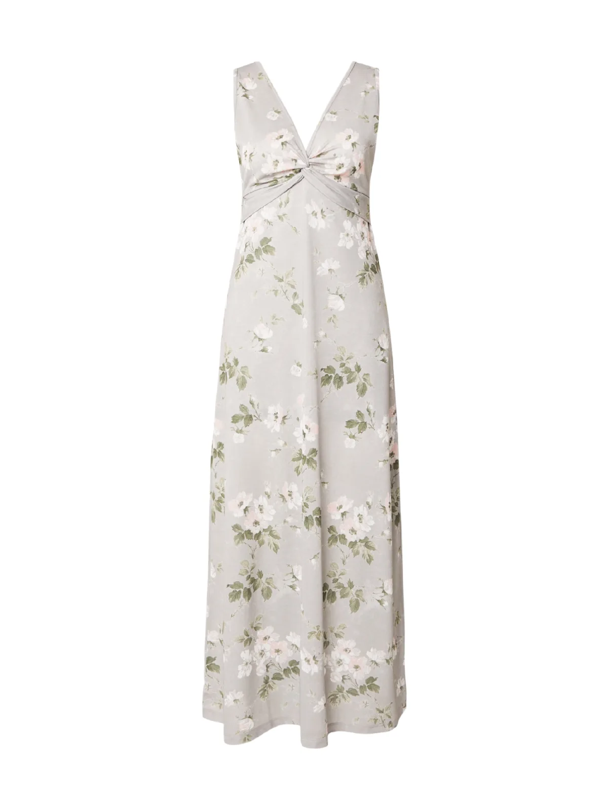 Design: Gevoerde zoom/rand, Zijdelingse inkepingen, Uitgesneden rug; Materiaal: Gerecycled materiaal; Halstype: V-hals; Motief: Bloemenprint; Soort bandjes: Brede bandjes; Details: Gedrapeerd; Extra's: All-over patroon, Buigzame grip; Lengte: 7/8 lengte; Snit: Uitlopend; Pasvorm: Normale pasvorm; Armlengte: Mouwloos