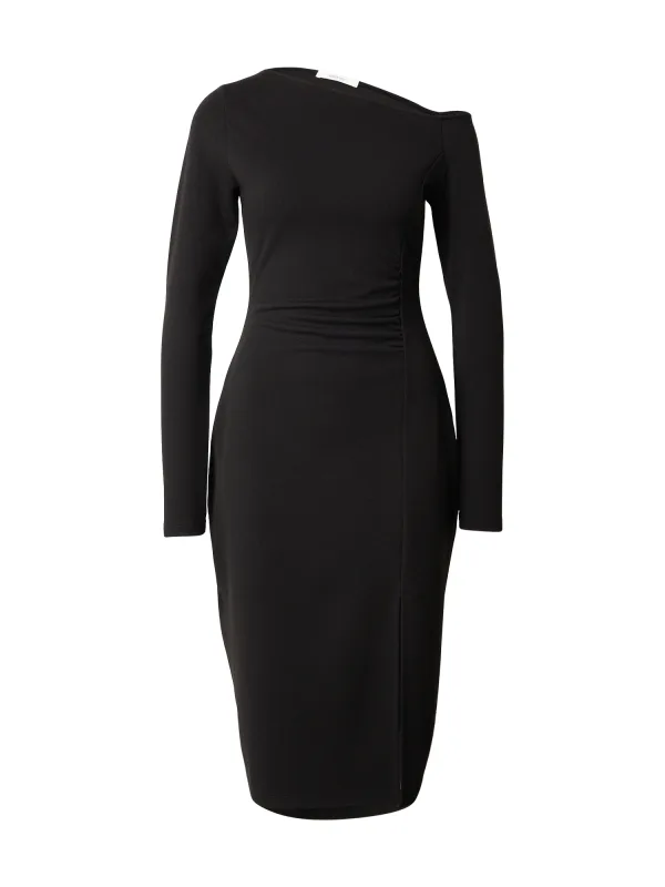 Design: Gevoerde zoom/rand, Rechte zoom, Zijdelingse inkepingen; Materiaal: Viscose; Motief: Effen; Soort bandjes: One-shoulder; Details: Gedrapeerd; Extra's: Op staal naden, Vaste grip; Lengte: Knielengte; Snit: Getailleerd; Pasvorm: Normale pasvorm; Armlengte: Lange mouw