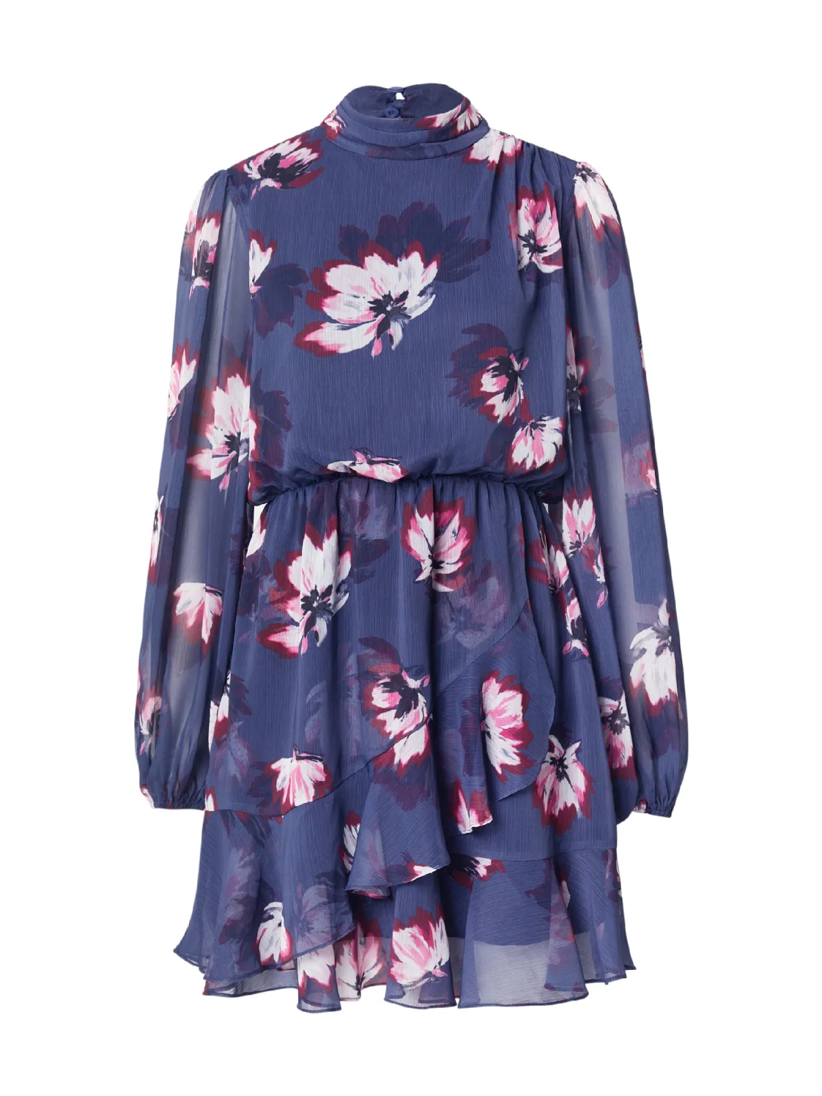 Design: Pofmouwen, Om te knopen/binden; Halstype: Opstaande kraag; Motief: Bloemenprint; Details: Gedrapeerd; Extra's: All-over patroon, Gladde stof; Lengte: Kort/mini; Snit: Getailleerd; Pasvorm: Normale pasvorm; Armlengte: Lange mouw