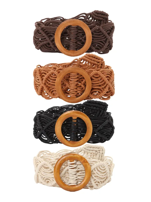 Design: Gesp; Type sluiting: Gesp; Motief: Effen; Materiaal: Textiel; Type riem: Heupriem; Extra's: Gestructureerd oppervlak; Aantal: 4 Pack