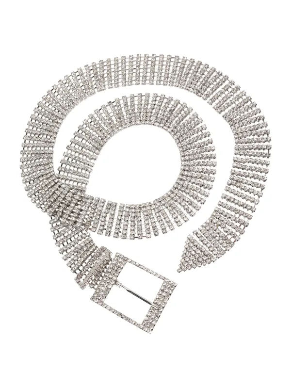 Design: Gespsluiting; Type sluiting: Gesp; Motief: Effen; Materiaal: Metaal; Type riem: Heupriem; Extra's: Met halfedelstenen, Glitterend, Gestructureerd oppervlak