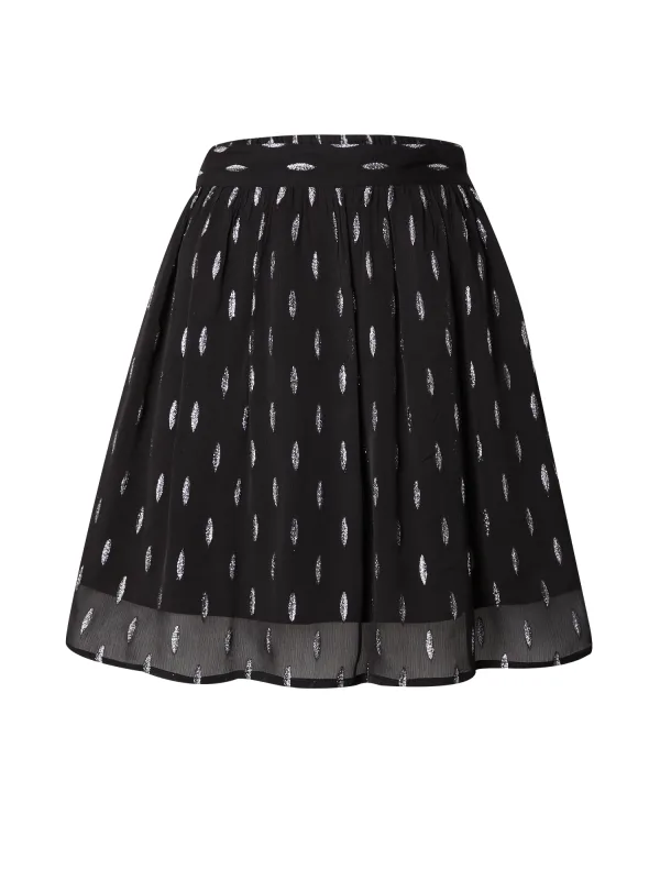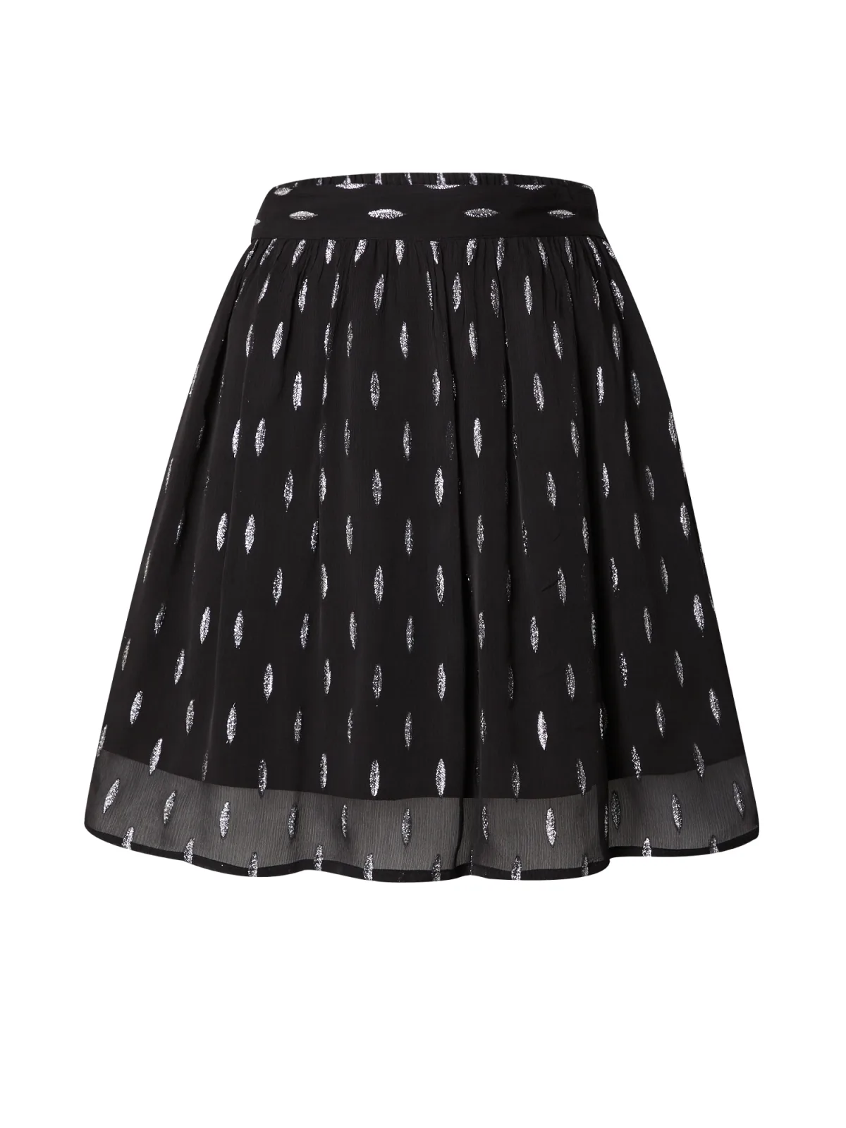 Design: Gevoerde zoom/rand, Elastische taille/zoom, Met onderrok; Materiaal: Viscose; Rokvorm: A-lijn rok; Details: Gedrapeerd; Extra's: All-over patroon, Gladde stof, Metallic look; Lengte: Kort/mini; Pasvorm: Normale pasvorm