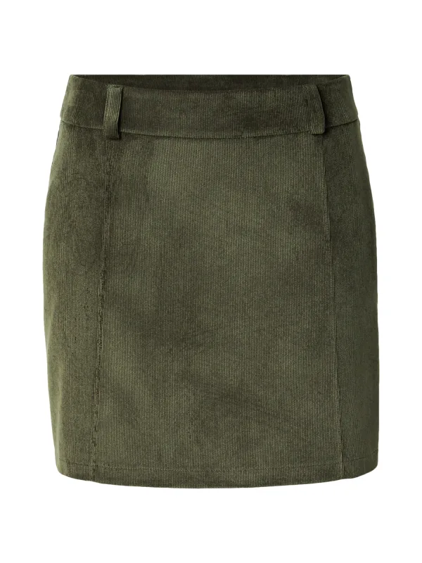 Design: Gevoerde zoom/rand, Rechte zoom; Materiaal: Corduroy; Motief: Effen; Rokvorm: Minirok; Extra's: Op staal naden, Met textuur, Riemlussen; Lengte: Kort/mini; Pasvorm: Normale pasvorm