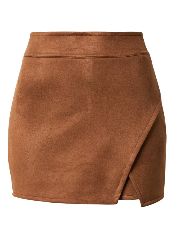 Design: Gevoerde zoom/rand, Rechte zoom, Ritszakken aan de zijkant; Type sluiting: Ritssluiting; Materiaal: Imitatieleder; Motief: Effen; Rokvorm: Minirok; Details: Wikkel design; Extra's: Op staal naden, Velours look; Lengte: Kort/mini; Pasvorm: Normale pasvorm