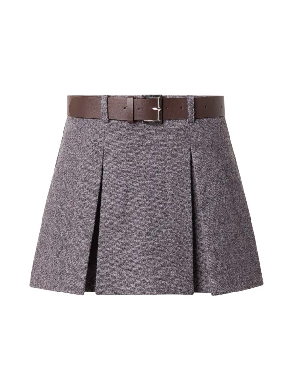 Design: A-lijn, Rechte zoom, Met riem; Motief: Mélange; Rokvorm: Plooirok; Details: Plooien; Extra's: Op staal naden, Riemlussen; Lengte: Kort/mini; Pasvorm: Normale pasvorm