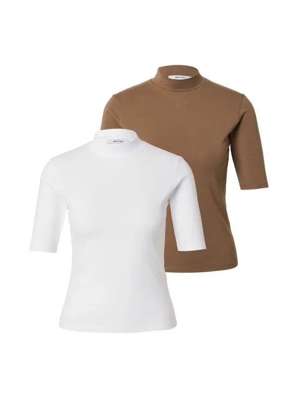 Design: Gevoerde zoom/rand, Rechte zoom; Materiaal: Jersey; Halstype: Opstaande kraag; Motief: Effen; Extra's: Op staal naden, Voelt zacht aan; Pasvorm: Slanke pasvorm; Aantal: 2 Pack; Armlengte: Kwartmouw; Lengte: Normale lengte