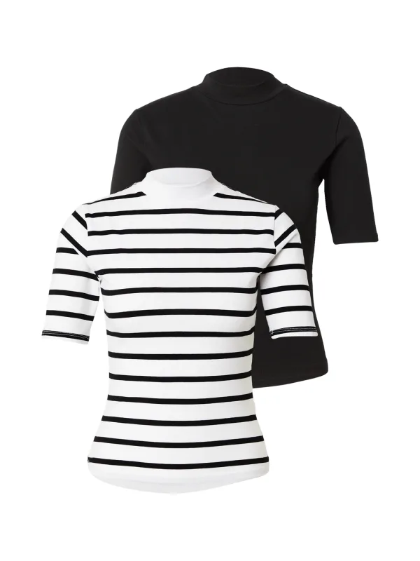 Design: Gevoerde zoom/rand, Rechte zoom; Materiaal: Jersey; Halstype: Opstaande kraag; Motief: Gestreept; Extra's: All-over patroon, Voelt zacht aan; Pasvorm: Slanke pasvorm; Aantal: 2 Pack; Armlengte: Kwartmouw; Lengte: Normale lengte