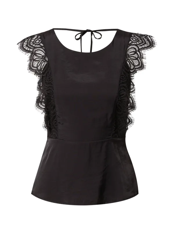 Blouse type: Blouseshirt; Design: Gevoerde zoom/rand, Gesneden mouw, Ronde zoom, Om te knopen/binden, Uitgesneden rug; Halstype: Ronde hals; Motief: Effen; Kraag: Zonder kraag; Details: Kant; Extra's: Op staal naden, Lichte stof; Pasvorm: Slanke pasvorm; Armlengte: Kwartmouw; Lengte: Normale lengte