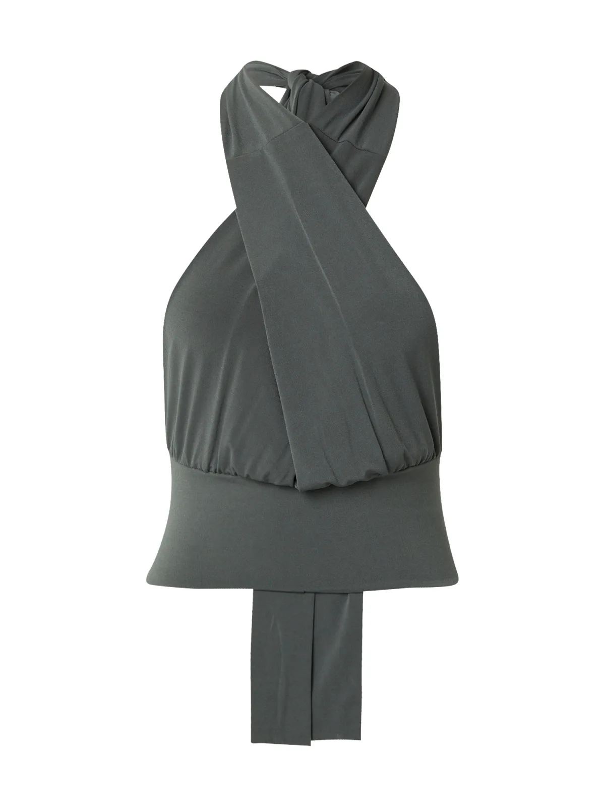Design: Elastische taille/zoom, Diepe snit/decolleté, Om te knopen/binden; Materiaal: Jersey; Halstype: V-hals; Motief: Effen; Soort bandjes: Haltermodel; Details: Gedrapeerd; Extra's: Op staal naden, Gladde stof; Pasvorm: Aansluitende pasvorm; Armlengte: Mouwloos; Lengte: Korte pasvorm