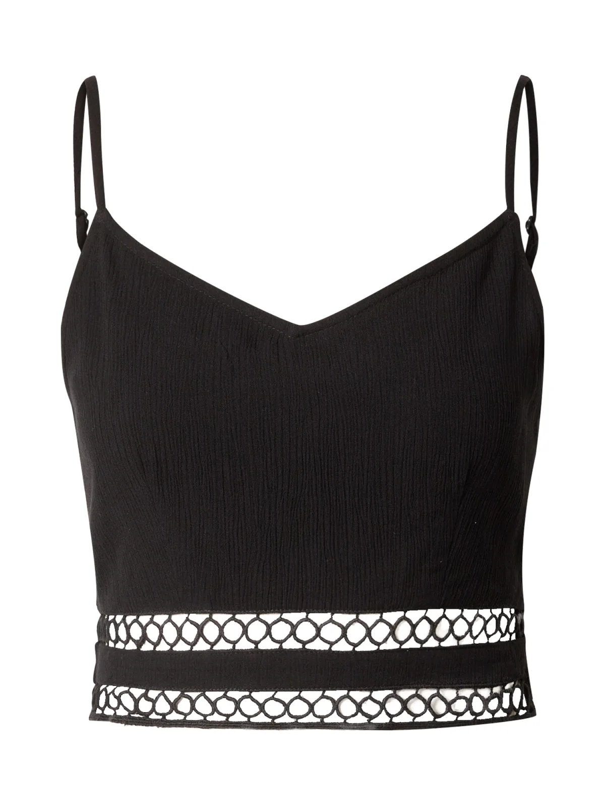 Blouse type: Blouseshirt; Design: Gevoerde zoom/rand, Diepe snit/decolleté; Materiaal: Viscose; Halstype: V-hals; Motief: Effen; Kraag: Zonder kraag; Soort bandjes: Spaghettibandjes; Details: Mesh; Extra's: Op staal naden, Voelt zacht aan; Pasvorm: Slanke pasvorm; Armlengte: Mouwloos; Lengte: Korte pasvorm