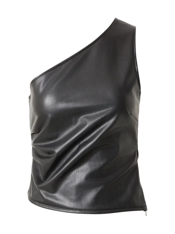 Design: Gevoerde zoom/rand, Getailleerd model; Materiaal: Imitatieleder; Motief: Effen; Soort bandjes: One-shoulder; Details: Gedrapeerd; Extra's: Op staal naden, Stevige stof; Pasvorm: Aansluitende pasvorm; Armlengte: Mouwloos; Lengte: Normale lengte