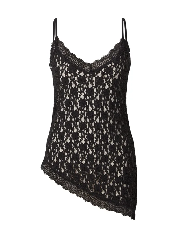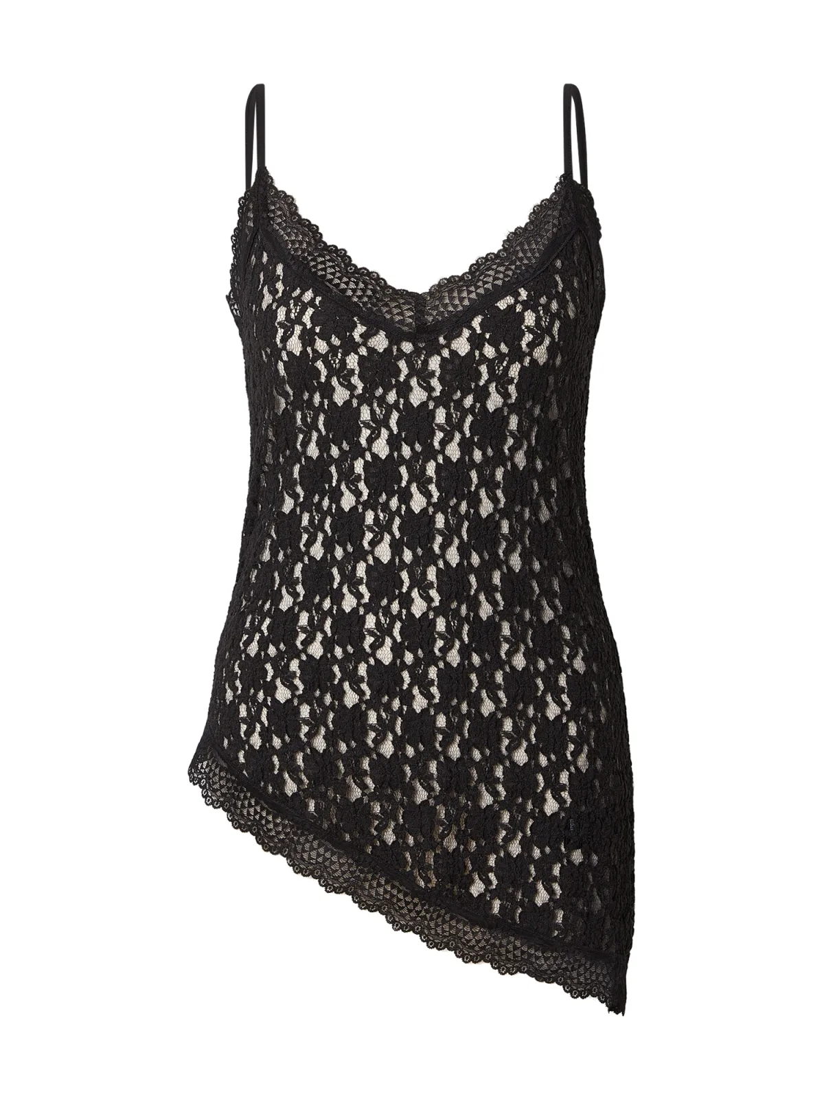 Design: Asymmetrische zoom, Zoom/rand met boord, Diepe snit/decolleté; Halstype: V-hals; Motief: Effen; Soort bandjes: Spaghettibandjes; Details: Kant; Extra's: Licht transparant, Verstelbare bandjes, Op staal naden; Pasvorm: Slanke pasvorm; Armlengte: Mouwloos; Lengte: Normale lengte