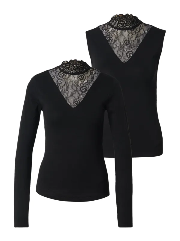 Design: Gevoerde zoom/rand, Rechte zoom; Materiaal: Jersey; Halstype: Opstaande kraag; Motief: Effen; Details: Kant; Extra's: Licht transparant, Op staal naden, Voelt zacht aan; Pasvorm: Slanke pasvorm; Aantal: 2 Pack; Armlengte: Mouwloos; Lengte: Normale lengte