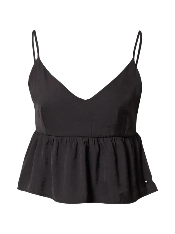 Halstype: V-hals; Motief: Effen; Soort bandjes: Spaghettibandjes; Details: Peplum; Extra's: Verstelbare bandjes; Pasvorm: Normale pasvorm; Armlengte: Mouwloos; Lengte: Normale lengte