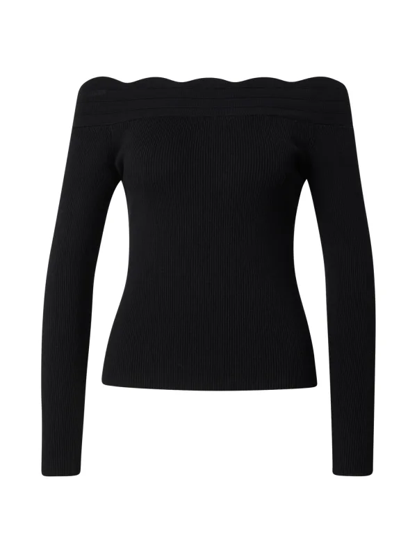 Design: Rechte zoom, Geribbeld gebreid, Zoom/rand met boord; Materiaal: Knitwear; Halstype: Carmen hals; Motief: Effen; Extra's: Op staal naden, Voelt zacht aan; Pasvorm: Slanke pasvorm; Armlengte: Lange mouw; Lengte: Normale lengte