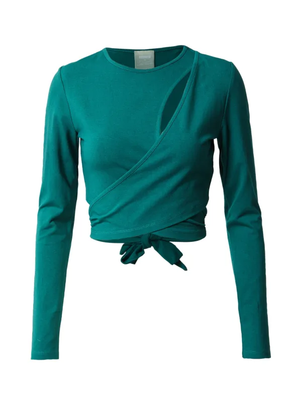 Design: Gevoerde zoom/rand, Om te knopen/binden, Ingelegde kraag; Materiaal: Jersey; Halstype: Ronde hals; Motief: Effen; Details: Cut-outs, Wikkel design; Extra's: Op staal naden, Voelt zacht aan; Pasvorm: Slanke pasvorm; Armlengte: Lange mouw; Lengte: Korte pasvorm